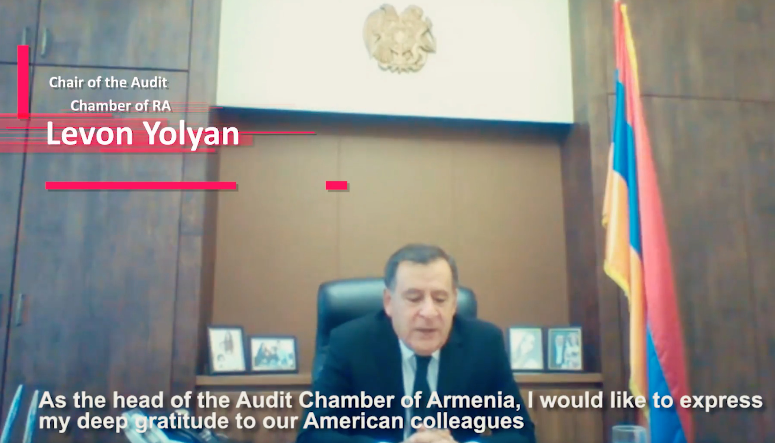 Հաշվեքննիչ պալատի նախագահ Լևոն Յոլյանը իր պատասխան խոսքում շնորհակալություն հայտնեց ամերիկացի գործընկերներին՝ Հայաստանի Հաշվեքննիչ պալատի զարգացման գործում իրենց արժեքավոր աջակցությունը ցուցաբերելու համար, և վերահաստատեց Հաշվեքննիչ պալատի պատրաստակամությունը անելու առավելագույնը, որպեսզի արդյունքում ձևավորվի ավելի ազդեցիկ Բարձրագույն հաշվեքննիչ մարմին: