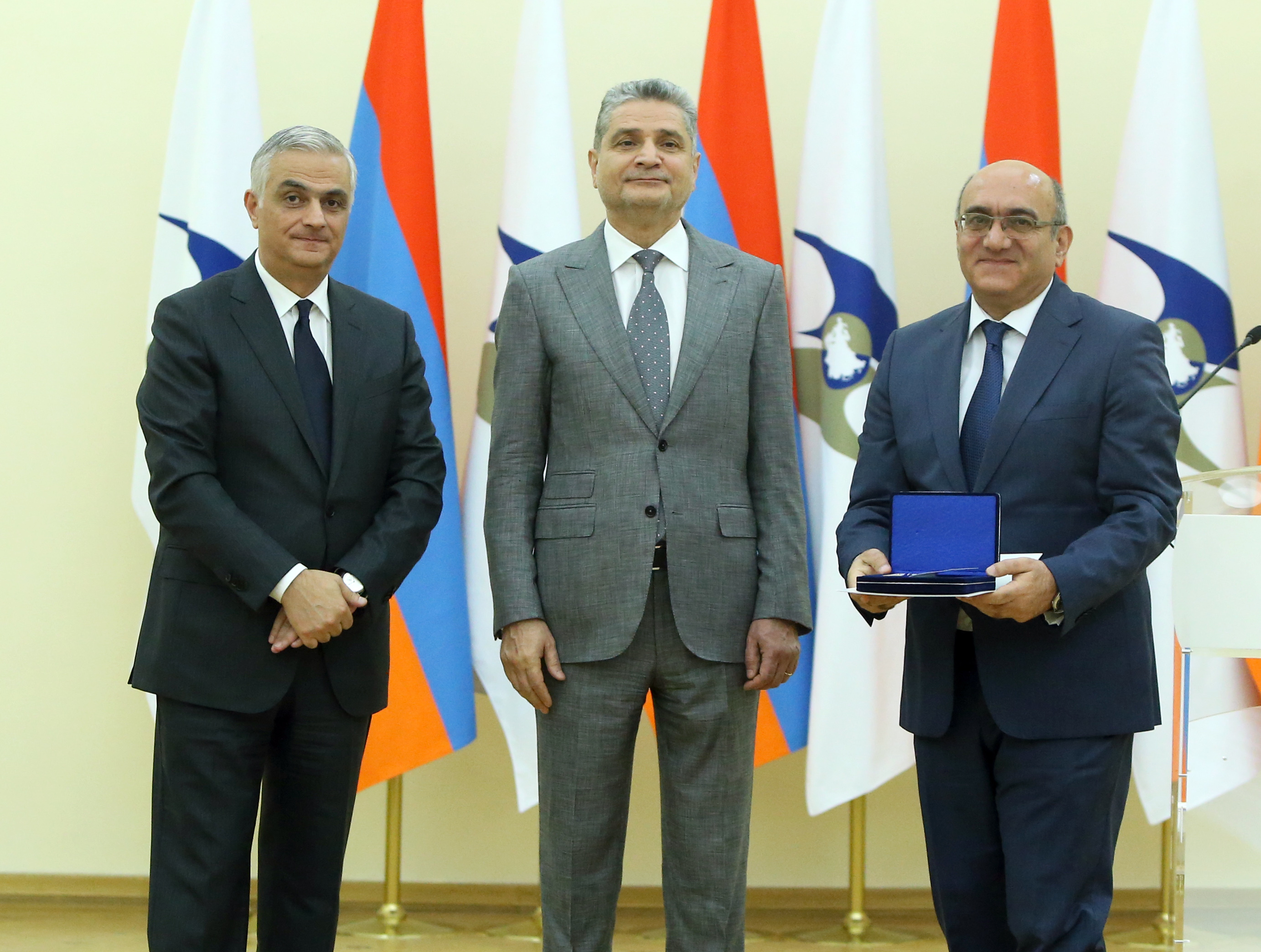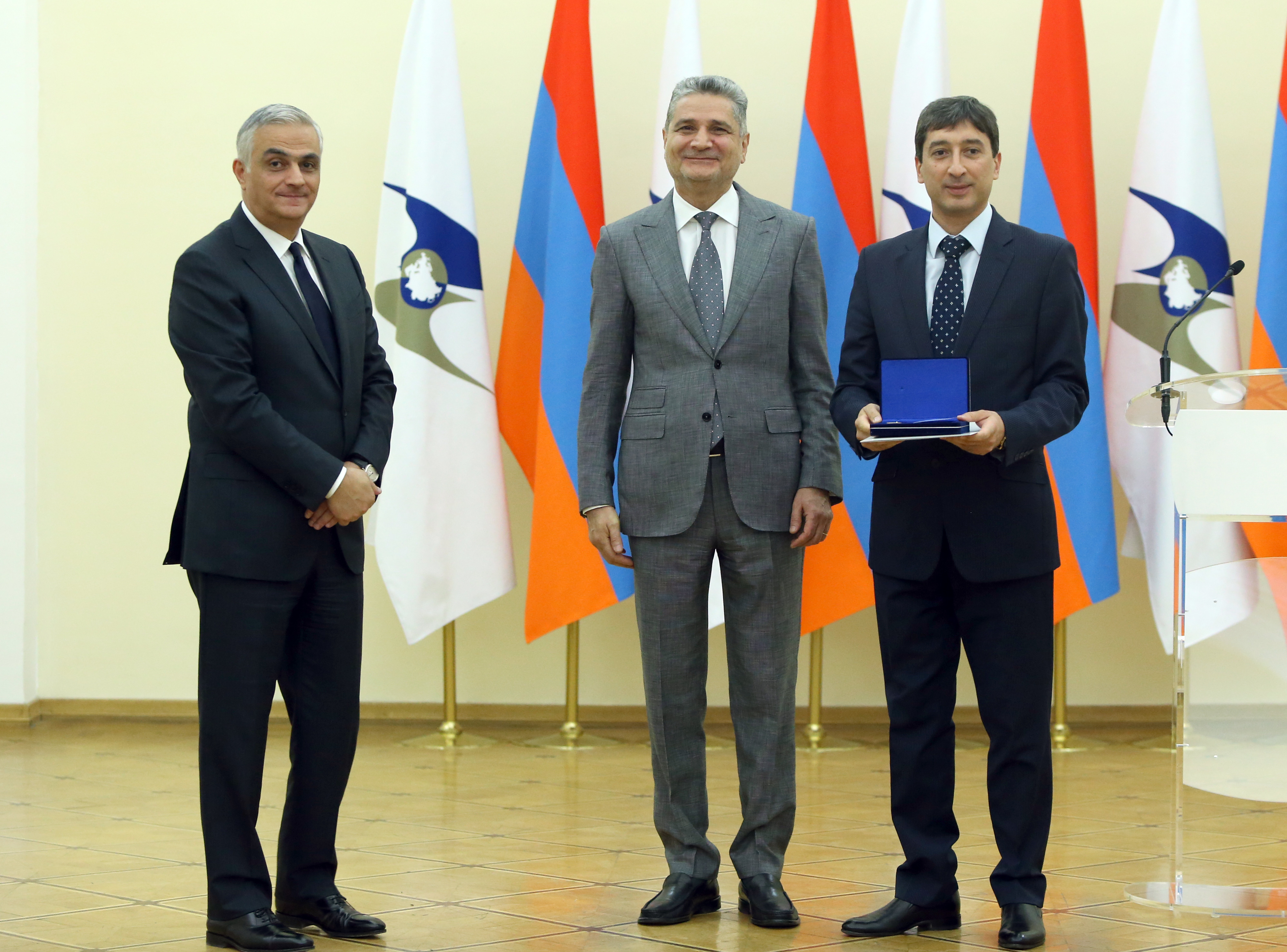 Մեդալները հանձնել են Եվրասիական տնտեսական հանձնաժողովի կոլեգիայի նախագահ Տիգրան Սարգսյանը և ՀՀ փոխվարչապետ Մհեր Գրիգորյանը։