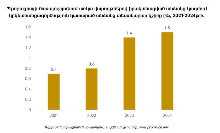 Տվյալ հաշվեքննության նախաձեռնմանը նպաստեց պրոբացիայի շահառուների կազմում կրկնահանցագործություն կատարած անձանց տեսակարար կշռի աճի միտումը:
